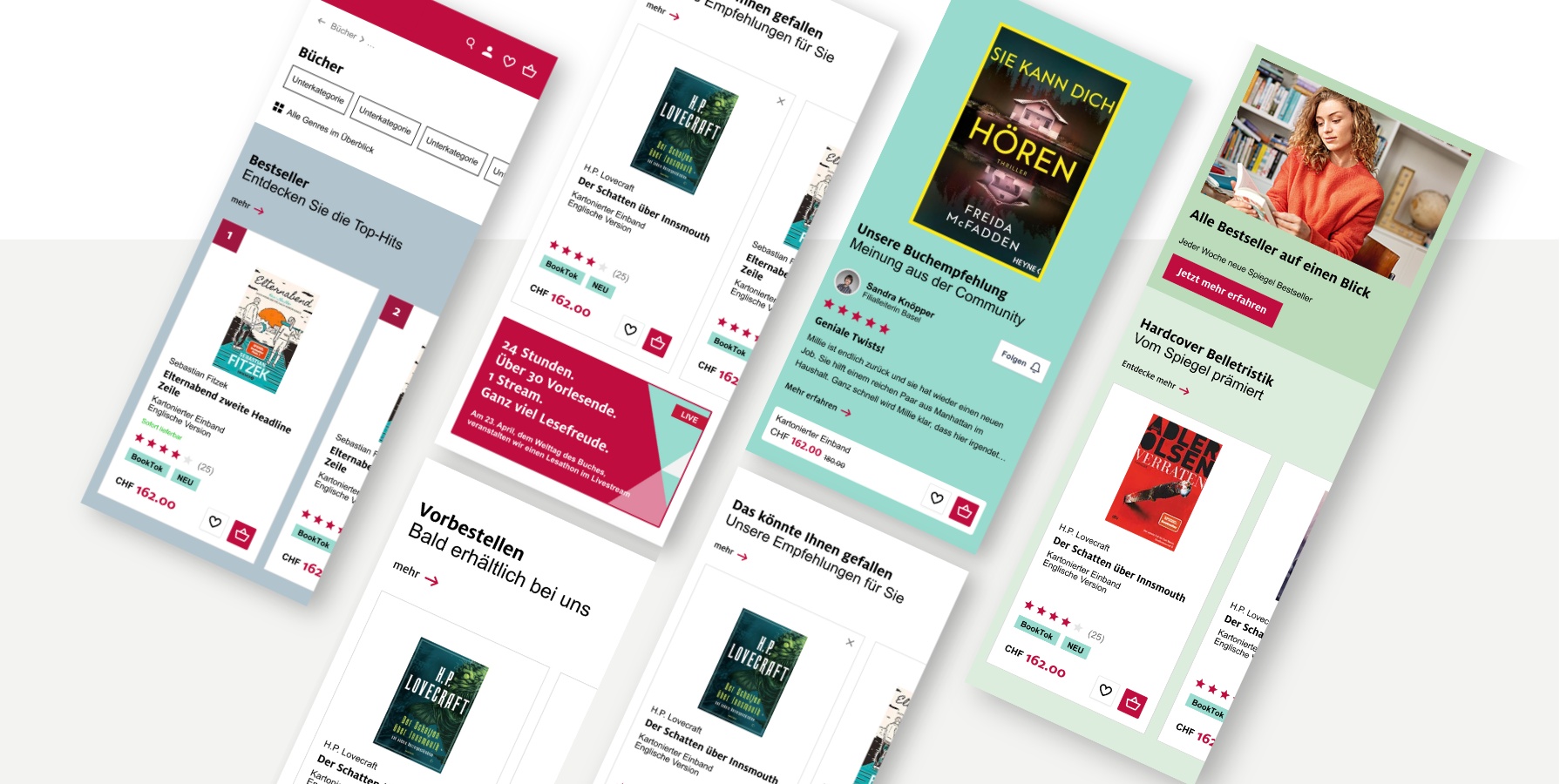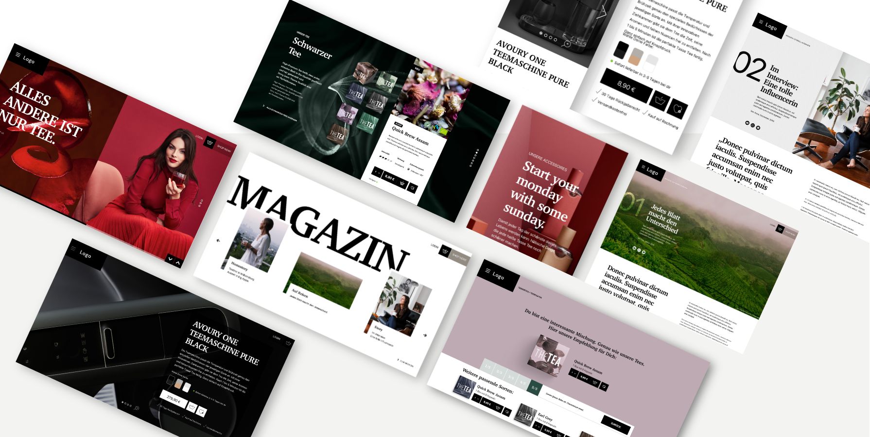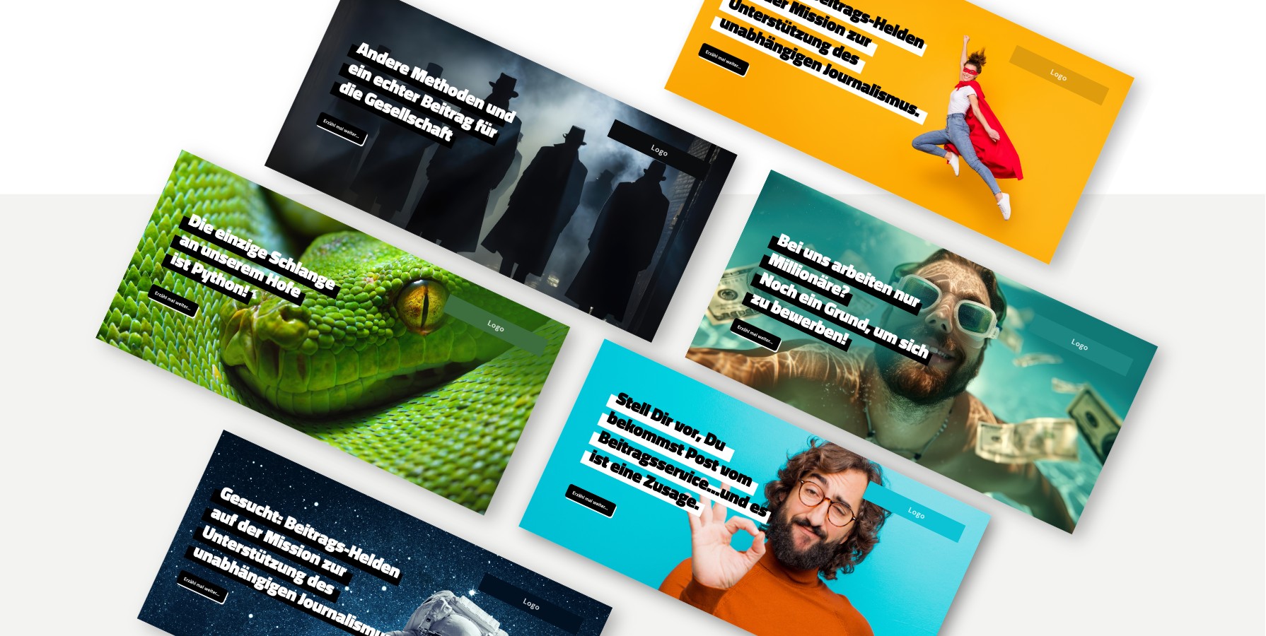 * Aus Diskretionsgründen sind Kunden- und Projektnamen in den Darstellungen teilweise anonymisiert. Die gezeigten Arbeiten enthalten auszugsweise gekürzte Darstellungen, Konzept- oder Pitchstände sowie exemplarische Inhalte und entsprechen nicht in jedem Fall der final veröffentlichten Fassung.